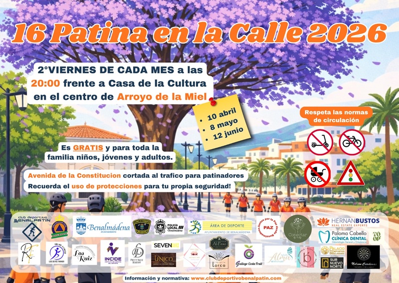 Desde el Ayuntamiento de Benalmádena nos informan de una nueva edición de «Patina en la calle» para el año 2026, que se celebrará los días 10 de abril, 8 de mayo y 12 de junio de 2026