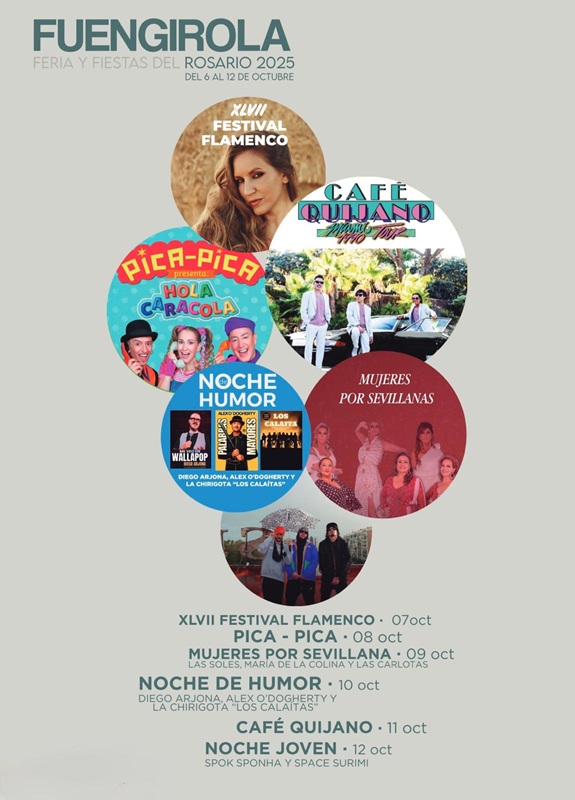 Desde los Ayuntamientos de Fuengirola y Mijas nos comunican la celebración de la Romería en honor a la Virgen del Rosario, que tendrá lugar el próximo 28 de septiembre. La romería recorrerá desde las 11:00 horas distintos viales de los municipios de Fuengirola y Mijas, con salida desde la Plaza de la Constitución, recorriendo la Avenida Condes de San Isidro, Hermanos Pinzón, Avenida de Mijas, Camino de Campanales, Camino de Coín, y la margen del río Fuengirola hasta llegar al parque de El Esparragal.