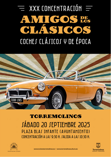 Desde la Unidad de Tráfico del Ayuntamiento de Torremolinos nos informan de que, con motivo de la celebración de la XXX concentración Amigos de los Clásicos el sábado, 21 de septiembre, que reunirá más de 100 coches de época, se producirán cortes de tráfico a lo largo de los viales que forman parte del itinerario de la misma desde las 09:30 horas: