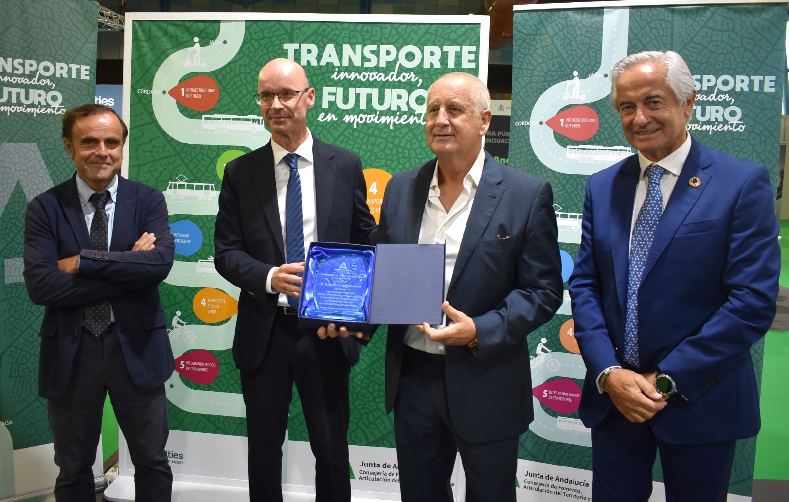 El pasado 1 de octubre se entregó a Don Antolino Lara Martínez el IV PREMIO A PERSONAS QUE TRABAJAN EN EMPRESAS DE TRANSPORTE A LA PROMOCIÓN DEL TRANSPORTE PÚBLICO Y A LA MOVILIDAD SOSTENIBLE EN EL ÁREA METROPOLITANA DE MÁLAGA en el Palacio de Exposiciones de Málaga.
