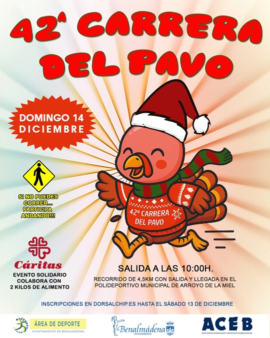 El Ayuntamiento de Benalmádena nos comunica que este domingo, 14 de diciembre, se celebrará la 42ª edición de la Carrera del Pavo, recorriendo el núcleo de Arroyo de la Miel.