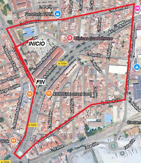 • CÁRTAMA ESTACIÓN, sábado, 21 de febrero: La concentración de participantes se llevará a cabo en la puerta de la tenencia de alcaldía a las 16 horas, seguidamente se iniciará el pasacalles entrando a Avda. Manuel de Falla, hasta el Centro Comercial de El Cruce, incorporación a carretera A 7054, se gira en rotonda de la fuente, incorporación a calle Marbella, hasta calle Carmen Juanola, cruce en A 7054 hasta calle Iglesia, giro a calle Alemania hasta avenida Manuel de Falla y finalización en el Centro Comercial El Cruce donde se realizará el final de las fiestas y el concurso de disfraces, en el escenario instalado para tal fin.